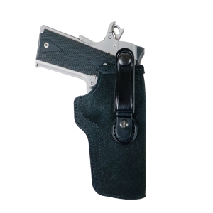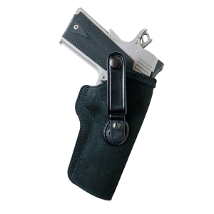 Optional tuckable belt loop for IWB holsters using Galco’s pin-and-screw attachment method. Constructed of a stepped, injection-molded polymer tab mated to a leather belt loop with snap closure. The leather loop will fit belts up to 1 3/4" wide.