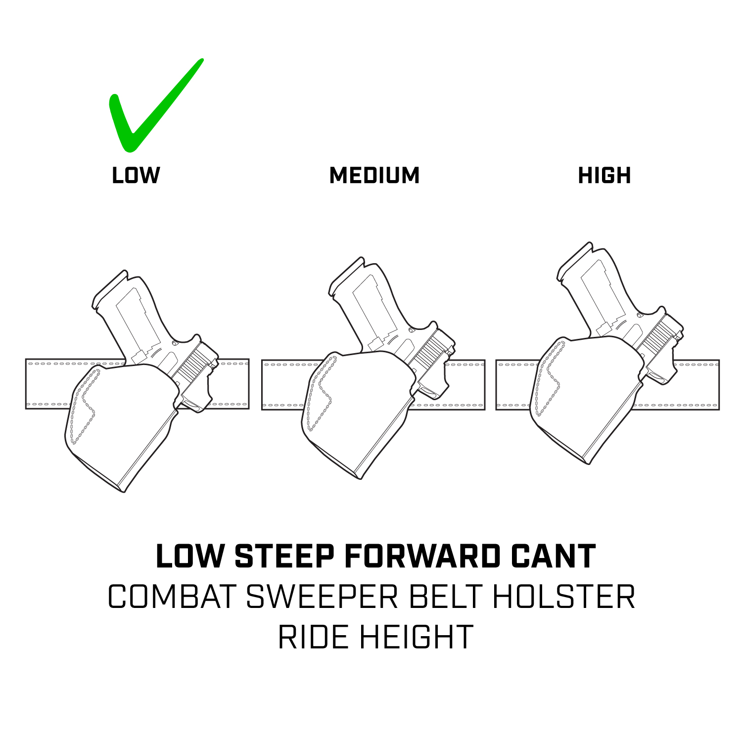 Hand-molded to fit specific handguns, the Combat Sweeper features deep molding on the exterior for excellent retention properties and superior appearance, with double-stitched seams for long-lasting durability.