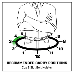 Made for semiautomatic pistols and double-action revolvers, the Cop 3 Slot holster is available in right or left hand designs in black finish.