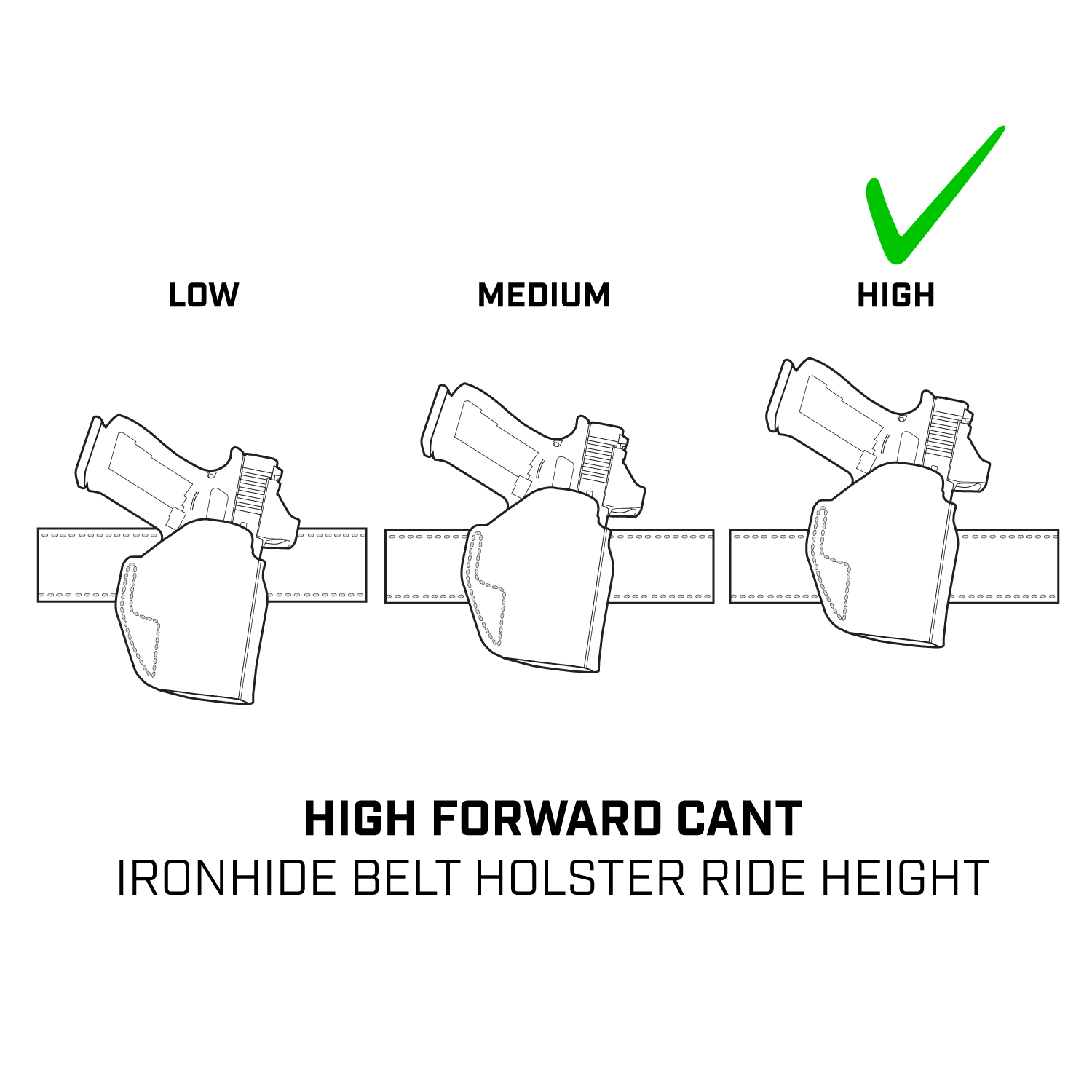 Versatility: The holster accommodates multiple carry modes. I have options with the Ironhide that I don't have with most other holsters. This is, for me, perhaps the biggest factor in choosing a holster. I haven't seen anything else in leather that matches the Ironhide's versatility. I often hear that everybody ends up with a drawer full of holsters eventually. With this holster, my shopping is done. If it ever wears out, I will buy another exactly like it.