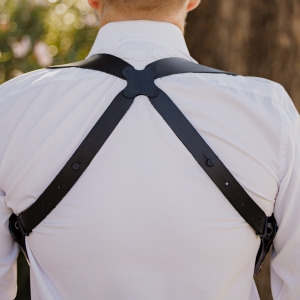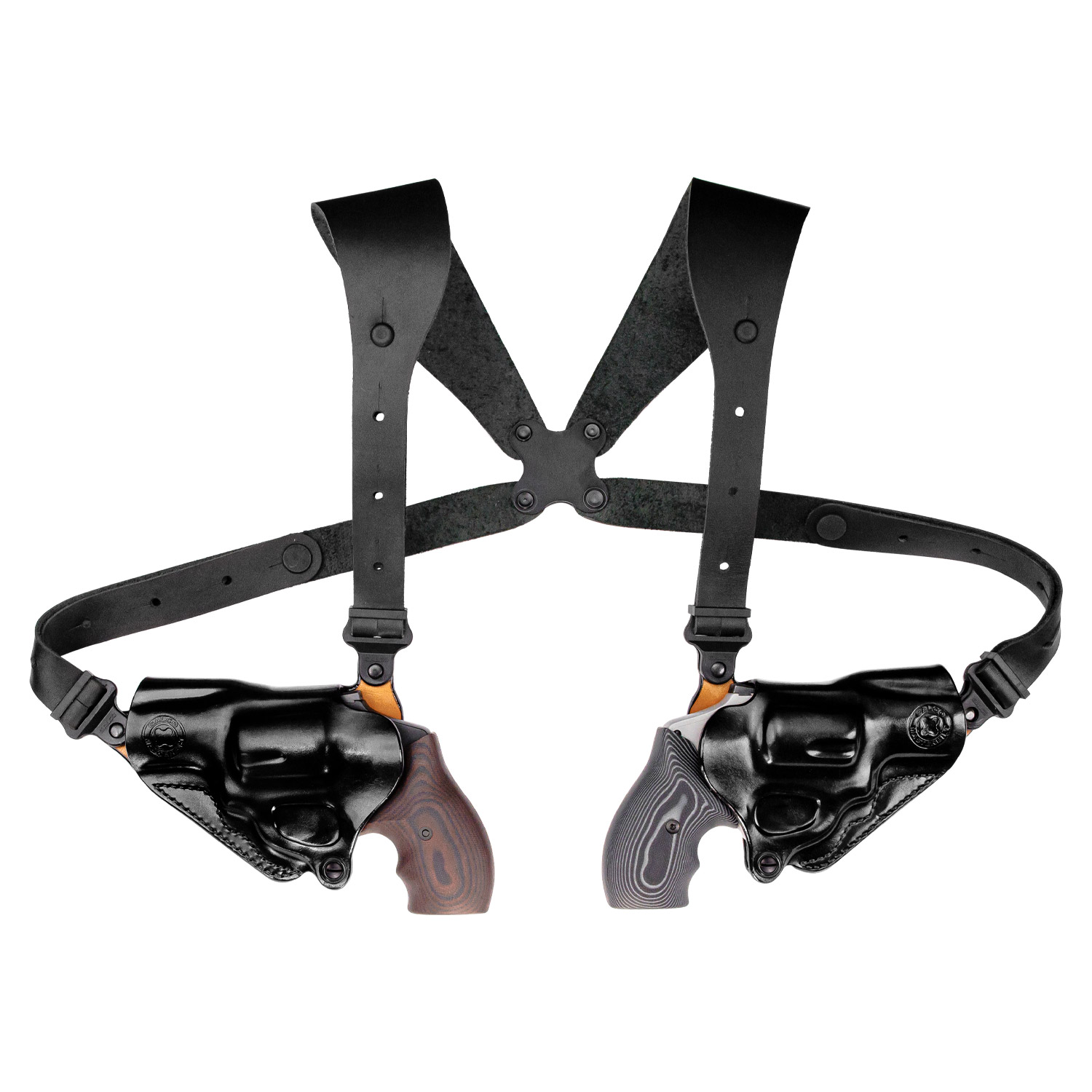 The full-grain leather harness measures 2.5” wide at the shoulder, providing outstanding comfort – especially with a brace of lightweight, small frame revolvers.