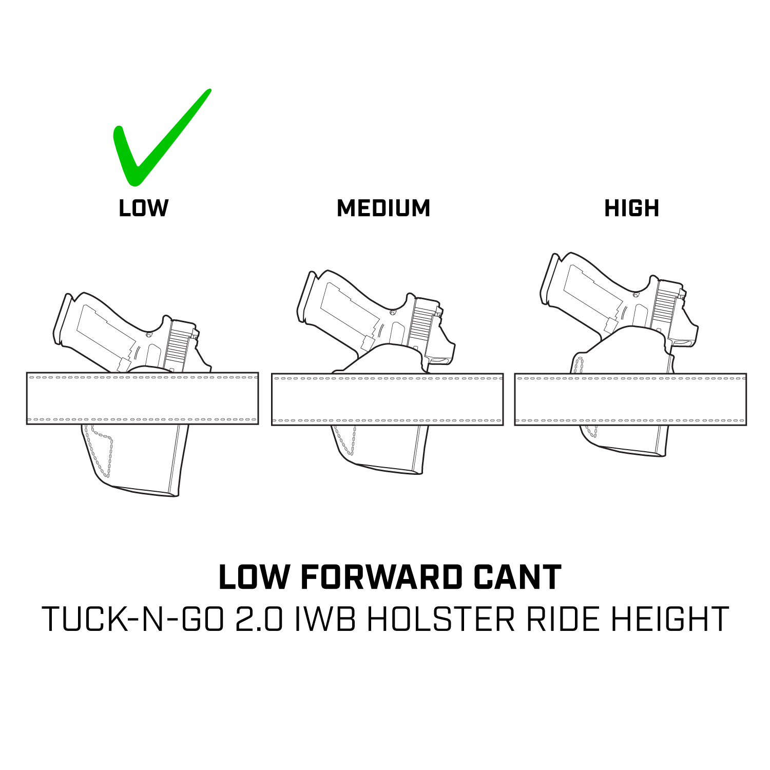 Part of Galco’s extremely popular – and popularly-priced – Carry Lite line of holsters, the Tuck-N-Go™ 2.0 is constructed of Premium Center Cut Steerhide™. The Tuck-N-Go 2.0's open top allows a fast draw once the concealing garment is swept up and away, while the reinforced mouth allows a smooth and easy return to the holster. The improved Tuck-N-Go 2.0’s belt clips are adjustable for cant, making it suitable for the strongside, crossdraw, or appendix carry positions.
